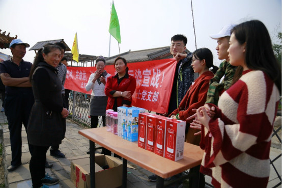 随后,我们围绕活动口号—“同饮水,共命运,齐担当—向水污染宣战!”向双塔村村民宣传水污染的危害、如何从自身做起防治水污染等方面的知识。同时,我们还准备了奖品来吸引当地村民积极参与活动,鼓励他们在宣传横幅上签署自己的姓名,表明自己愿参与到水资源保护中的志愿和决心!