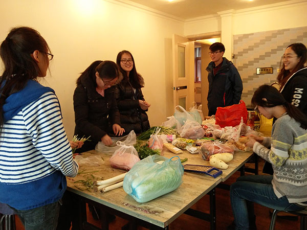 上午八点,采购小分队的队员们迎着朝阳去超市采购食材,为丰盛的晚餐做好充足的准备。中午十二点三十,大家集合完毕一起乘车来到了王府温馨公寓,明媚的阳光照得大家的心情更加美好。