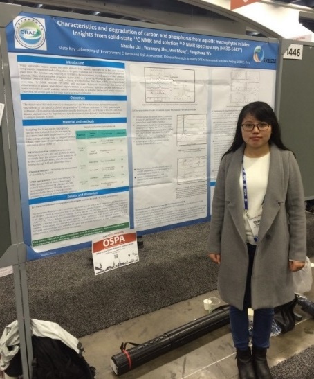 欧美无码 博士生刘沙沙的论文"Characteristics and degradation of carbon and phosphorus from aquatic macrophytes in lakes: insights from solid-state 13C NMR and solution 31P NMR spectroscopy"在分会场"Groundwater-surface water interactions:identitying and integrating physical, biological, and chemical processes across scales"以海报张贴的形式进行了展示。
