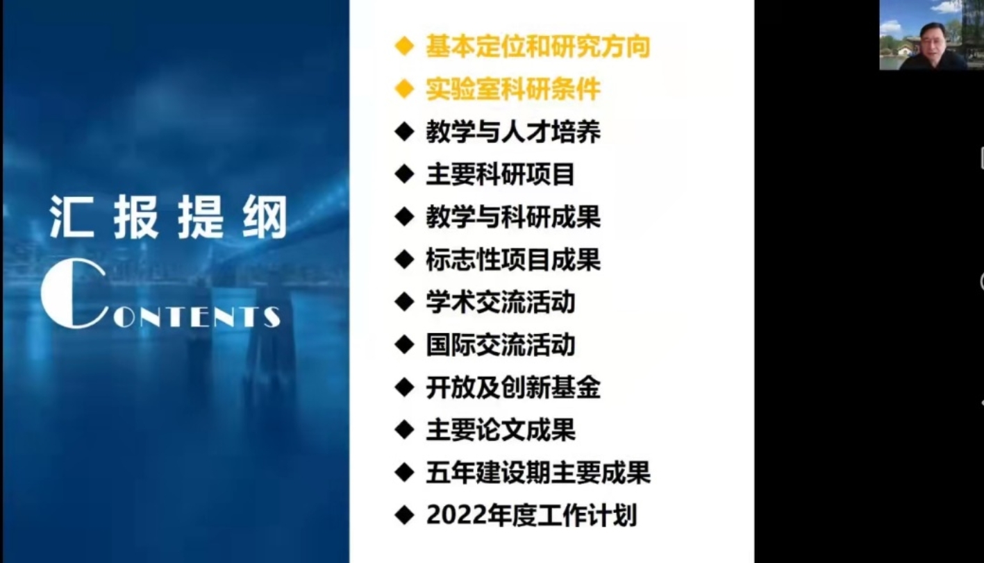 徐宗学教授首先从教学、人才培养、主要科研项目与成果、国内外学术交流活动、开放及创新基金等方面汇报了实验室在过去一年来开展的重要工作。此外,适逢实验室成立五周年即将面临验收之际,徐宗学教授对实验室过去五年的代表性项目与标志性成果围绕四大主要研究方向进行了总结介绍。最后,在2022年度的工作计划中强调要加强高端人才培养和引进,并进一步加强科研成果的凝练。随后,实验室副主任孟庆义副院长和张晓昕所长也分别对北京市水科学技术研究院和北京市城市规划研究院的工作亮点与技术增量进行了专题介绍。