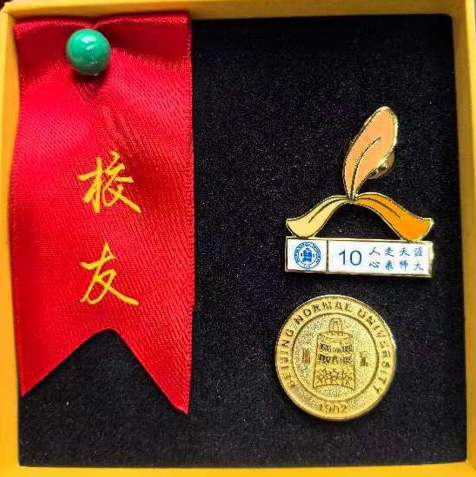 在纪念大会上,2014届校友郭朝斌代表毕业10年的校友领取秩年旗,苏海磊作为校友联络大使代表领取证书。