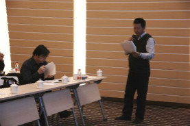 左上:滕彦国书记主持下午会议 右上:潘成忠副院长做述职报告