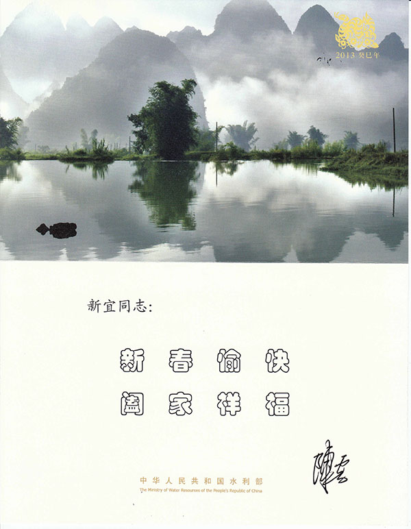 水利部陈雷部长给欧美无码 许院长寄送贺卡贺新年