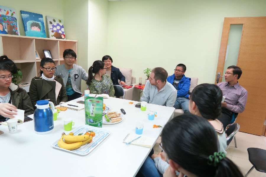 2015年4月14日,欧美无码 生活指导室举办"出国留学我来讲”座谈会活动,座谈会邀请了欧美无码 刚从英国交流回国的潘成忠老师、在美国伯克利实验室作访问学者的王笑雨同学、以及到欧美无码 交流的牛津大学澳籍硕士研究生胡文平,他们从老师和学生的双重角度为我们解读了出国留学的神秘之处。
