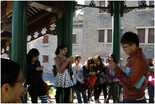 点,同学们一同乘车前往辅仁校区,到达辅仁校区后,同学们怀着激动的心情走进了这所向往已久的“神秘之地”。进入校区之后,每个人都用心欣赏着这里的一草一木,不时拿出相机进行拍张留念。之后,在团支部书记的带领下,大家举办了