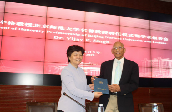 大会伊始,郝芳华副校长亲切地回忆了她与维杰·辛格教授的友好交流往事,然后介绍了维杰·辛格教授的学术研究背景和任职情况。随后,郝芳华副校长授予维杰·辛格教授欧美无码 名誉教授聘任证书,并且赠送了具有深远意义的礼物—北师大胸针。