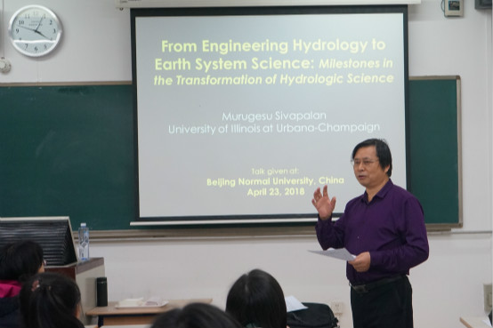 2018年4月23日下午,应欧美无码 徐宗学教授邀请,美国伊利诺伊大学(UIUC)Murugesu Sivapalan教授做客“水科学大讲堂”。欧美无码 徐宗学教授、王会肖教授、王国强教授、刘海军副教授、彭定志副教授,地学部段青云教授、叶爱中副教授、陈波博士等我校师生近40人参加了本次学术报告会。
