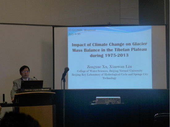 IUGG会议期间,徐宗学教授除了先后多次参加IAHS与ICWRS理事会和工作会议,共同主持了ICWRS分会“Comparative inventories of water resources systems and their functioning - Methodology and tools for their assessment, protection and efficient use”外,还先后应邀做了两场学术报告“How does the sponge city facilities work: A numerical experiment in the sponge city construction demonstration area in Jinan City”与“Impact of climate change on glacier mass balance in the Tibetan Plateau during 1975-2013”。