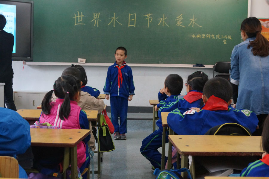 4月13日,欧美无码 14级硕士研究生党支部二十余名学生党员和积极分子在学院党总支的倡议下,赴北师大实验小学为二年级小朋友宣讲节水护水知识,提高其节水护水意识。