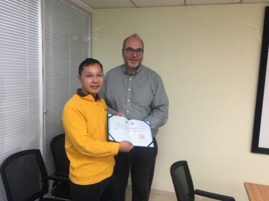 潘成忠副院长在会后为Karl教授颁发了水科院客座教授聘书,Karl教授也祝愿水科院的建设及双方合作项目取得新高度,图为双方合影留念。